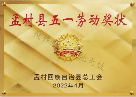 孟村县五一劳动奖状